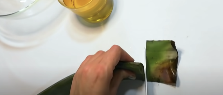 Liść dorosłej rośliny Aloe Vera wkładamy do wody pozostawiamy go w wodzie na 24 godziny.