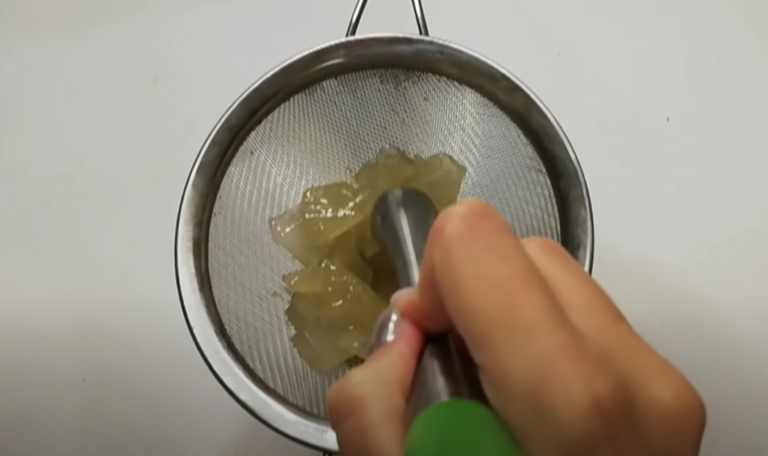 Po upłynięciu czasu odsadzamy całość i dokładnie wyciskamy miąższ z nadmiaru wody.
