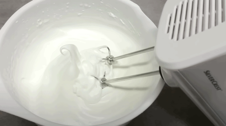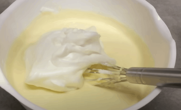 Kolejną część przełóż do miski i tylko delikatnie wymieszaj tak, aby nie stracić pęcherzyków powietrza. A w ostatnim kroku przelej mieszankę do ostatniej części białek i wymieszaj wszystko delikatnie po obwodzie aż składniki się połączą.