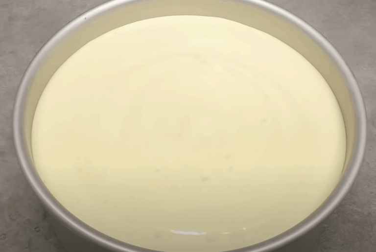 Przygotuj okrągłą formę do ciasta (20 cm) lub mniejszą kwadratową o wyższych krawędziach (z zewnątrz i od dołu owiń folią spożywczą) i przelej ciasto tak, aby zostało 1,5 cm od górnej krawędzi. Zużyj tylko tyle ciasta, aby nie przekroczyć wyznaczonego limitu.