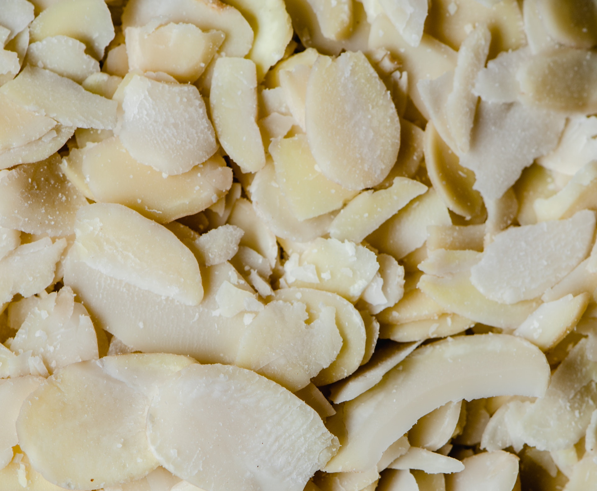 Na wierzch, jeśli masz na to ochotę, posyp ciasto cukrem pudrem i udekoruj migdałowymi plasterkami.