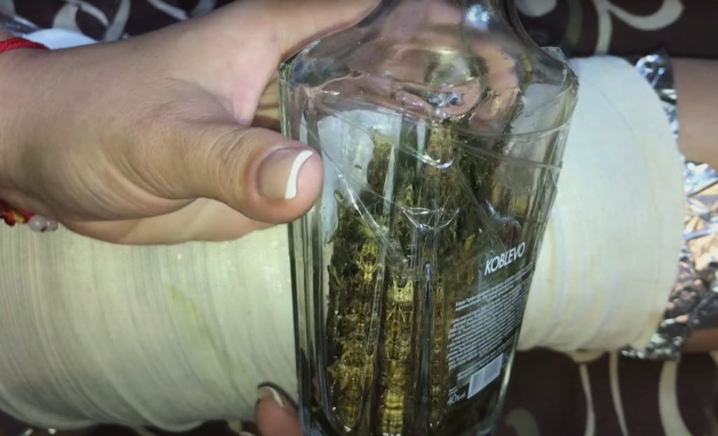 Włóż korzeń łopianu do szklanego pojemnika. Następnie wlej alkohol do innego czystego szklanego pojemnika. Przykryj pojemnik pokrywką. Pozostawić ziele do naciągnięcia na 10 dni w ciemnym miejscu.