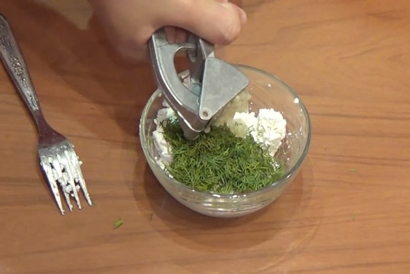 Cukier oraz sól rozpuść we wrzącej wodzie. Dodaj olej roślinny i mąkę. Dokładnie wszystko wymieszaj i wyrabiaj na ciasto, aż będzie gładkie i jednolite. Po wyrobieniu pozostaw ciasto na około 30 minut. Twaróg utrzyj widelcem i dodaj sól. Jeżeli masz ser żółty to zetrzyj go na tarce. Do twarogu lub sera dodaj czosnek oraz posiekane zioła. Wszystko starannie wymieszaj.