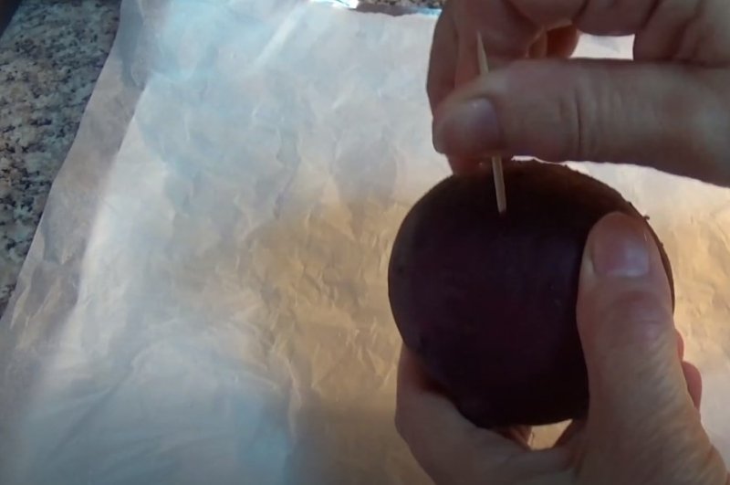 Odcinamy końce. Jeśli pieczemy kilka buraków, należy pamiętać, aby warzywa były podobnej wielkości.