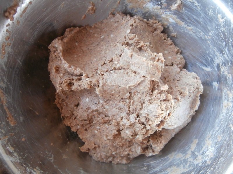 Na początku należy wymieszać sodę oczyszczoną z sokiem z cytryny i kefirem. Później dodać sól i cukier oraz mieszać do całkowitego rozpuszczenia. Następnie wlać olej roślinny i wsypać otręby oraz wybrane nasiona. Do mieszanki dodać przesiana mąkę żytnią i wyrabiać przez jakiś czas dłońmi.