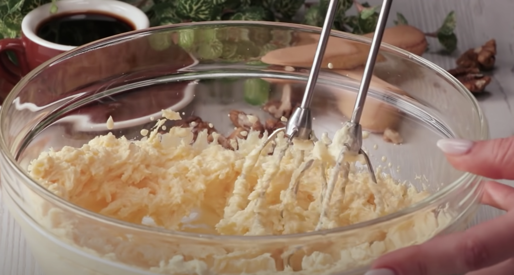 W osobnym naczyniu ubij miękkie masło. Delikatnie za pomocą trzepaczki lub łyżki wymieszaj obie masy, łącząc je ze sobą stopniowo.