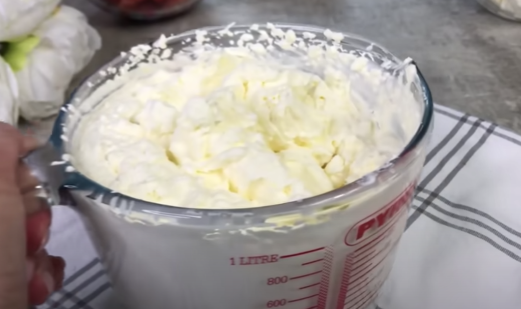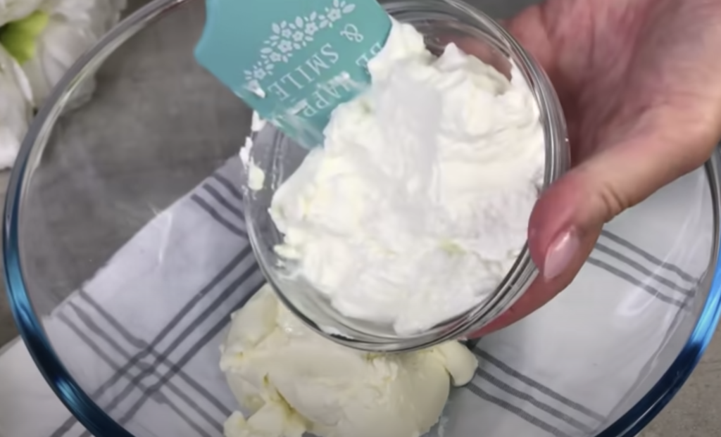 Teraz należy dodać do drugiej miski ubitą już wcześniej śmietanę.