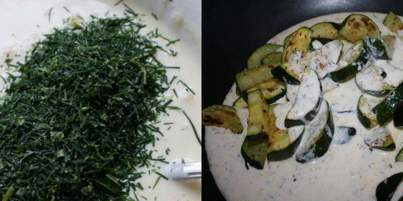 Upieczoną cukinię przełożyć do głębokiej patelni i wlać do niej przygotowany sos śmietanowy, doprawić do smaku. Wszystko zagotować oczywiście co jakiś czas mieszając, aby nie przypaliło się.