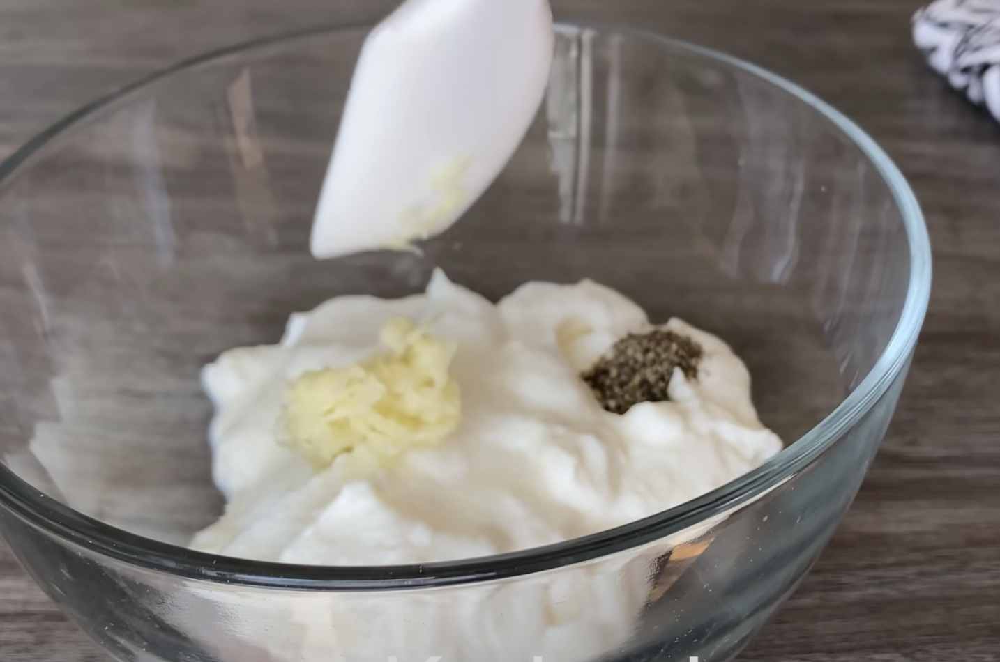 Cukinię podajemy z przygotowanym przez nas sosem jogurtowo-czosnkowym. Smacznego!