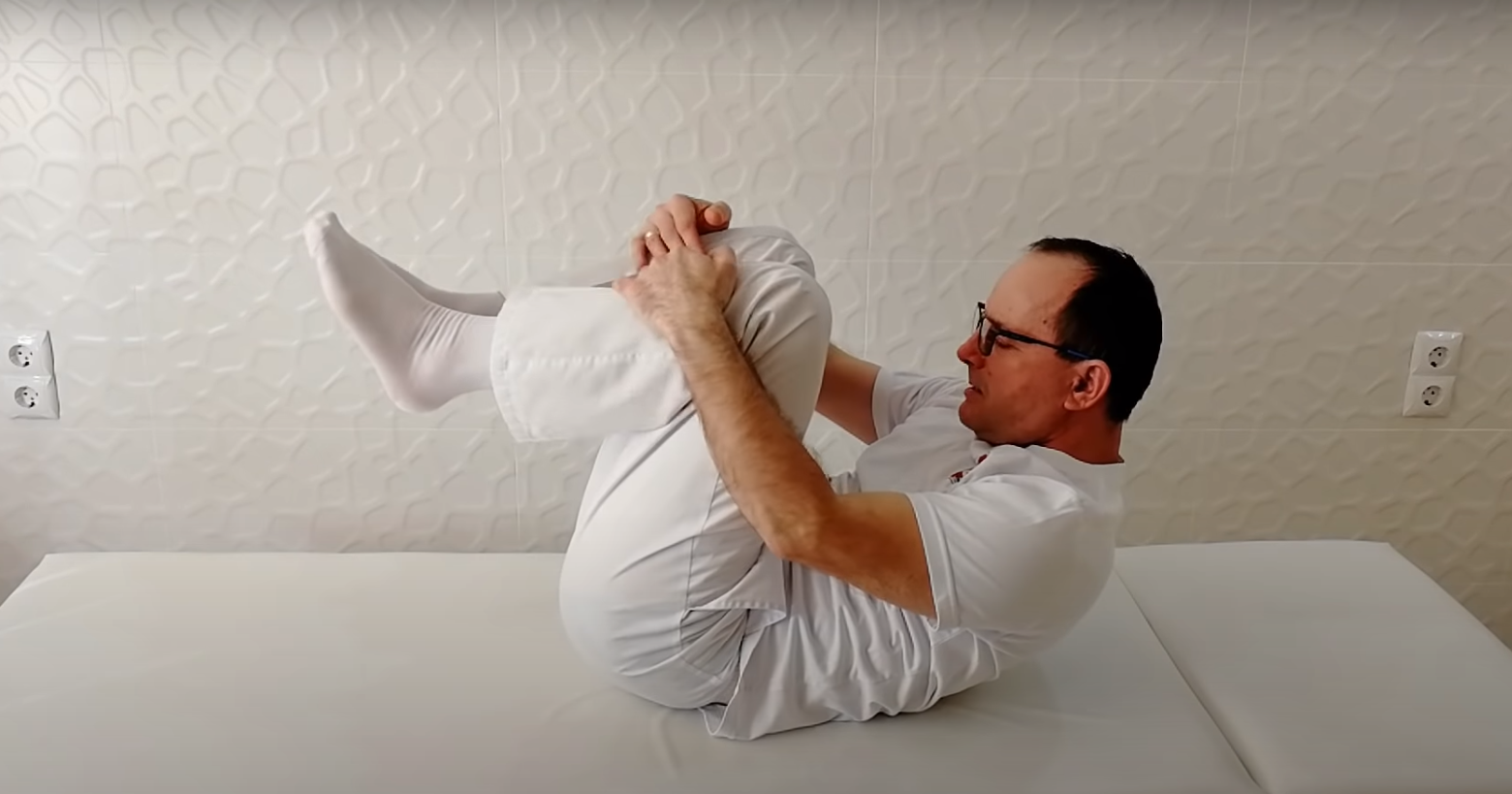 Połóż się na plecach. Unieś kolana i spróbuj zbliżyć je do klatki piersiowej a następnie obejmij je ramionami. Wykonaj 15 – 20 powtórzeń. Z każdym następnym spróbuj coraz bardziej przyciągać kolana do ciała.