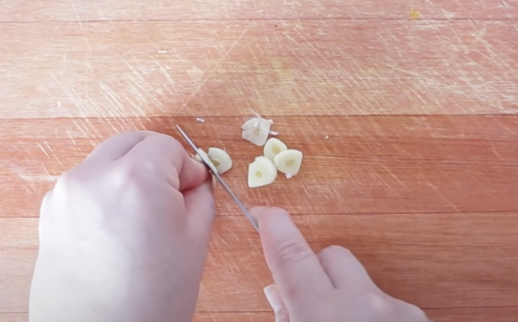 Możesz usunąć skórki z czosnku i posiekać go na małe kawałki. Następnie umieść kawałki w naczyniu i dodaj odrobinę wody.