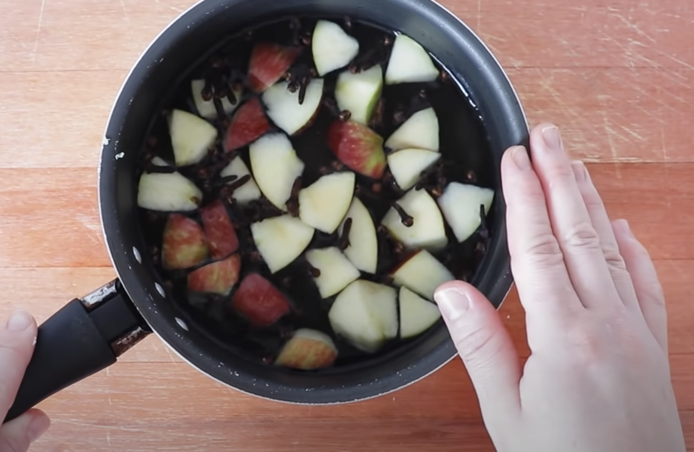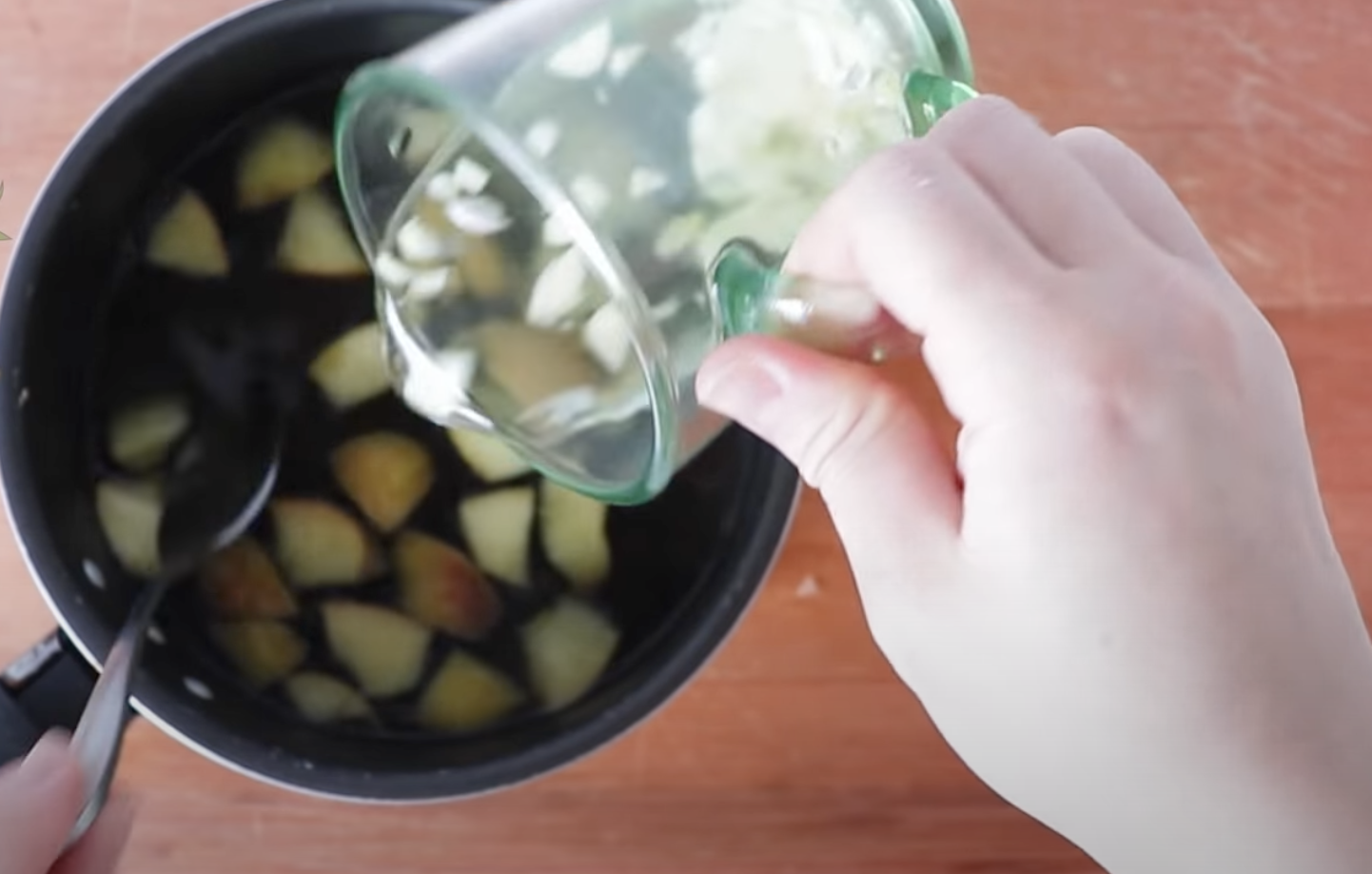 Nie musisz ich kroić na małe kawałki. Włóż je do dużego garnka. Dodaj wodę i goździki.
