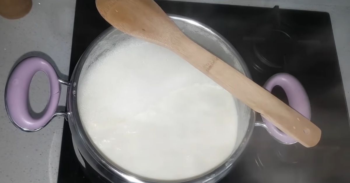 Umieść mleko o temperaturze pokojowej w rondelku i doprowadź do wrzenia. Gotować przez 10-15 minut. Zdjąć mleko z kuchenki. Pozostawić mleko do ostygnięcia do temperatury około 50°C. Najlepszym sposobem sprawdzenia temperatury jest użycie termometru kuchennego.