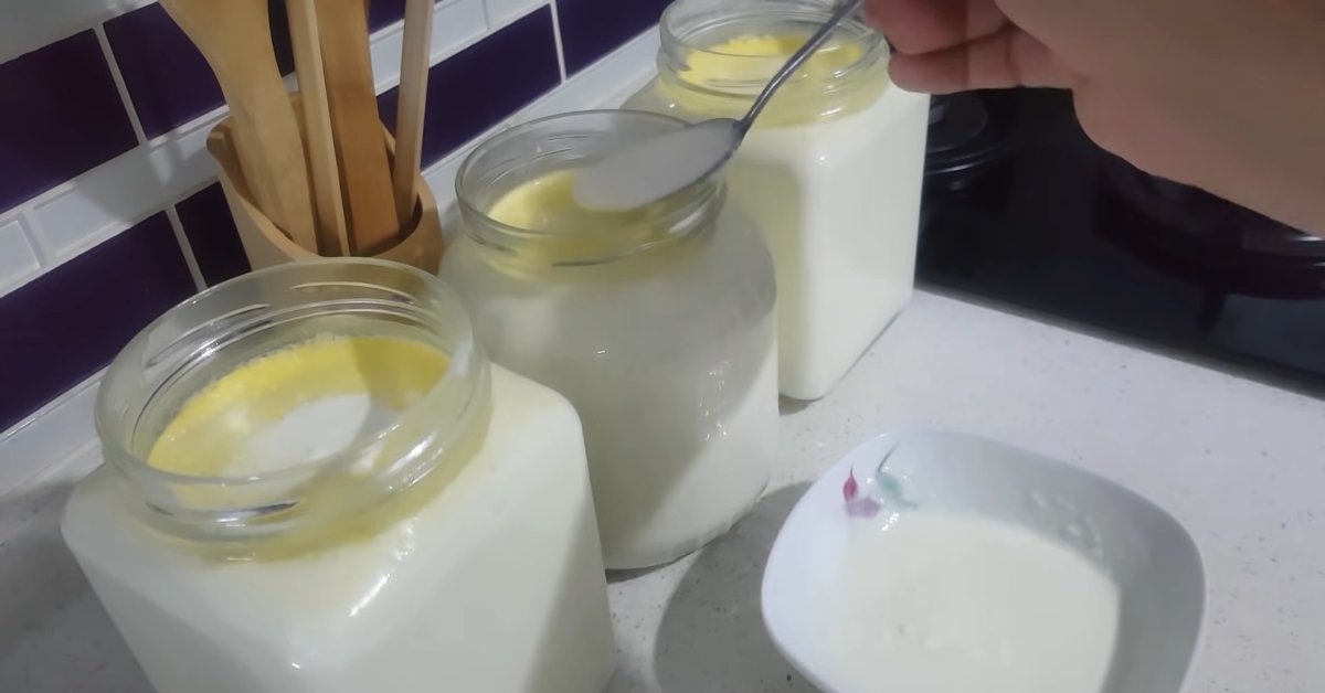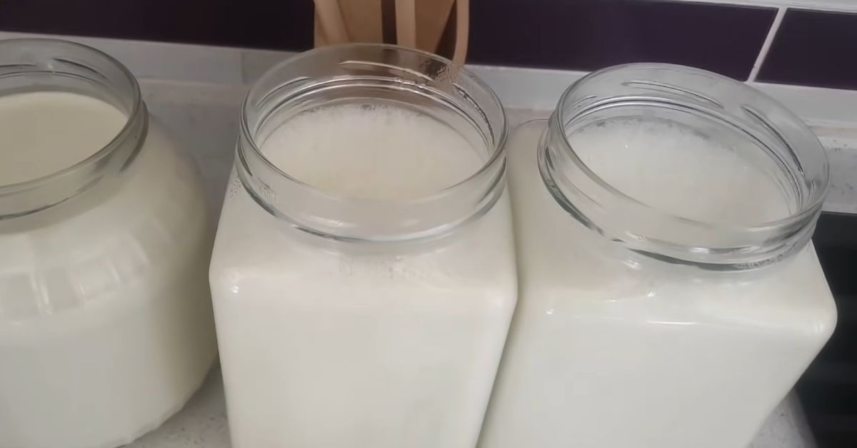 Rozdzielić mleko do słoików. Z każdego słoika wyjąć łyżkę stołową mleka i przelać do osobnej miski.