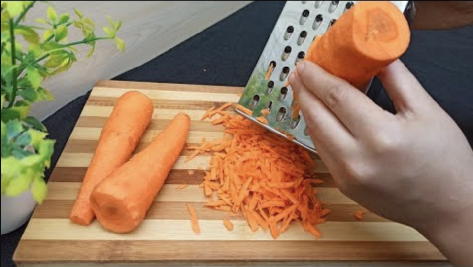 Obierz marchewki i zetrzyj. Wymieszaj wszystkie warzywa w jednej większej misce sałatkowej.