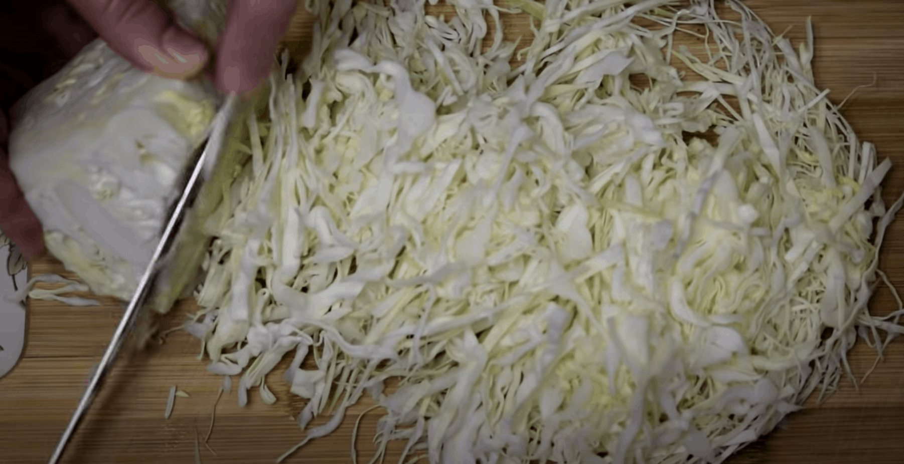 Kapustę drobno posiekaj – możesz użyć noża, tarki lub skrobaczki.
