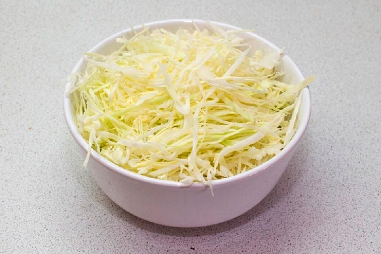 Kapustę oraz marchewkę posiekaj na małe paski.