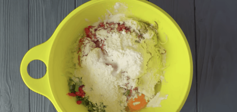 Pozostałe składniki wymieszać z kapustą i cebulą. Dodaj jajko, śmietanę, mąkę i sodę oczyszczoną. Wymieszaj wszystko razem, w miarę możliwości używając rąk.