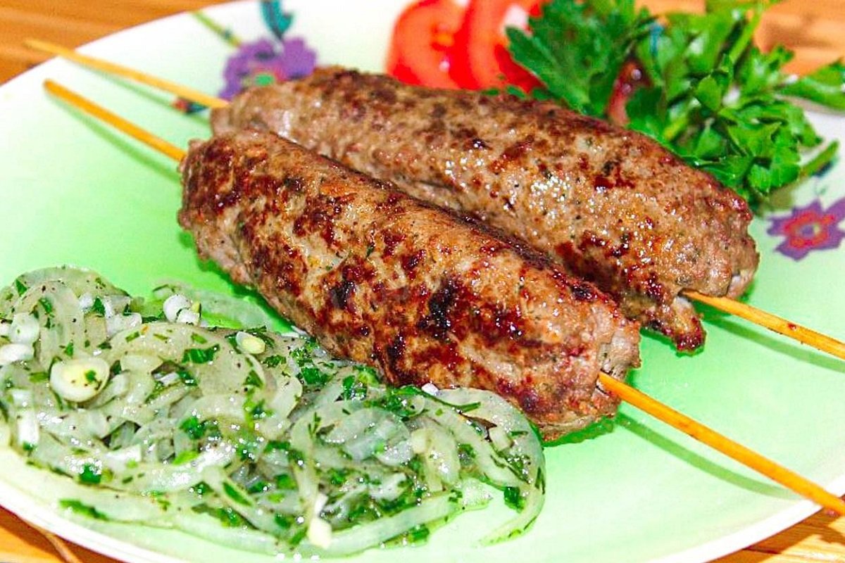 Mięso mielone nakładamy na szaszłyki lub małe wykałaczki, nadając mu eliptyczny kształt. Rozciągnij go i odpowiednio ściśnij boki. W ten sposób kebab zachowa więcej soku.