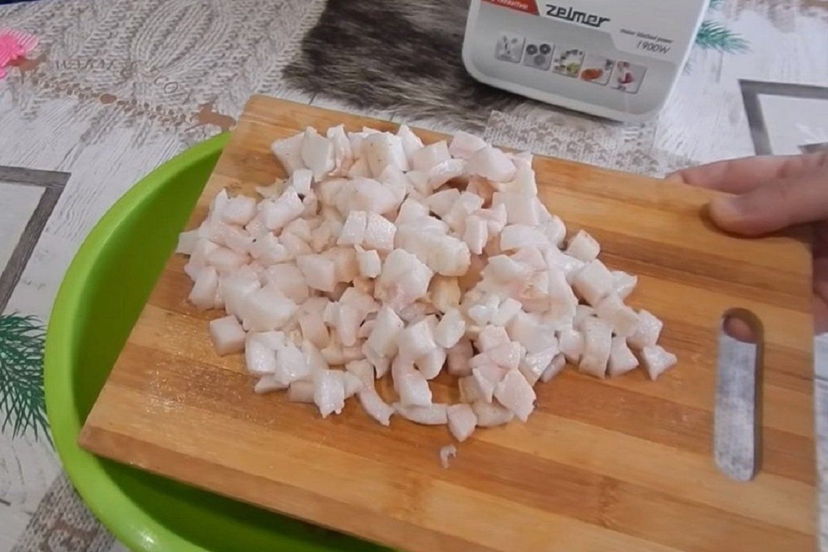 Będzie lepiej, jeśli sam ugotujesz mięso mielone. Wymieszaj z drobno posiekanymi kostkami boczku i cebulą.