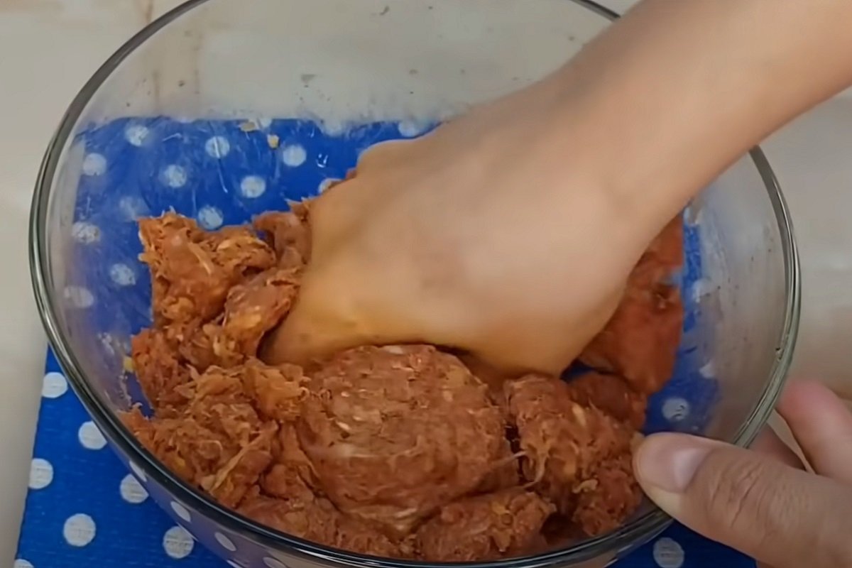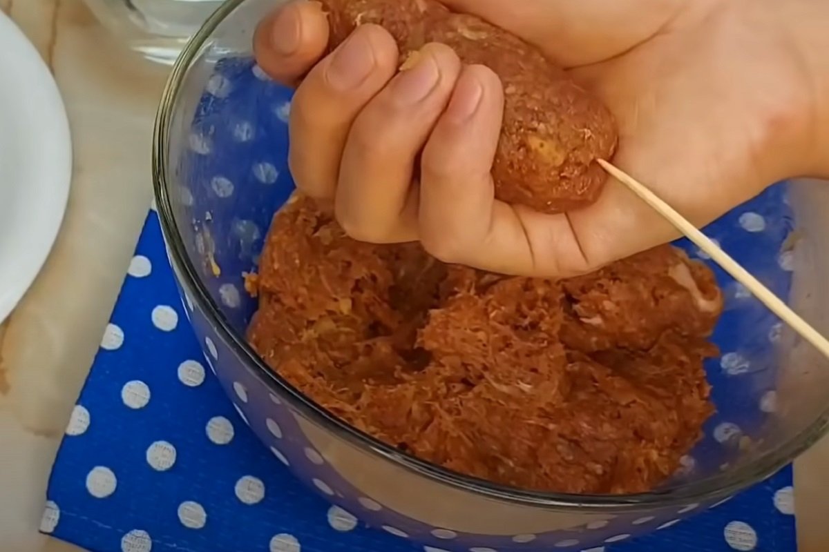 Dodaj zioła, przyprawy i sól. Teraz najważniejsza rzecz: zagnieść mięso mielone do lepkiej konsystencji. Następnie odstaw do lodówki na pół godziny.