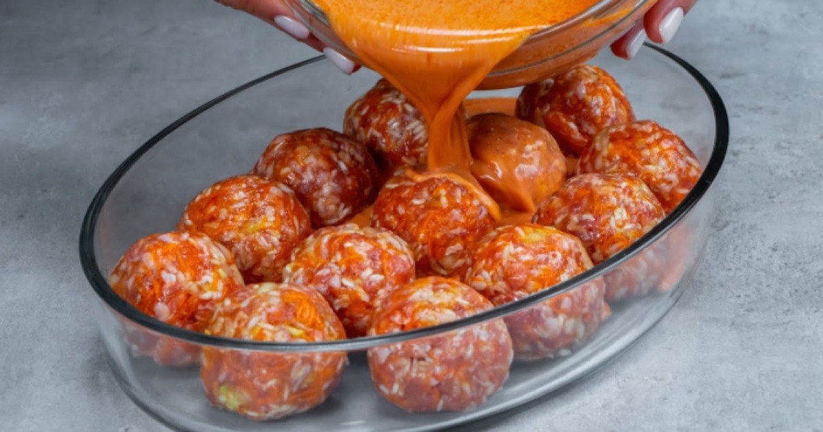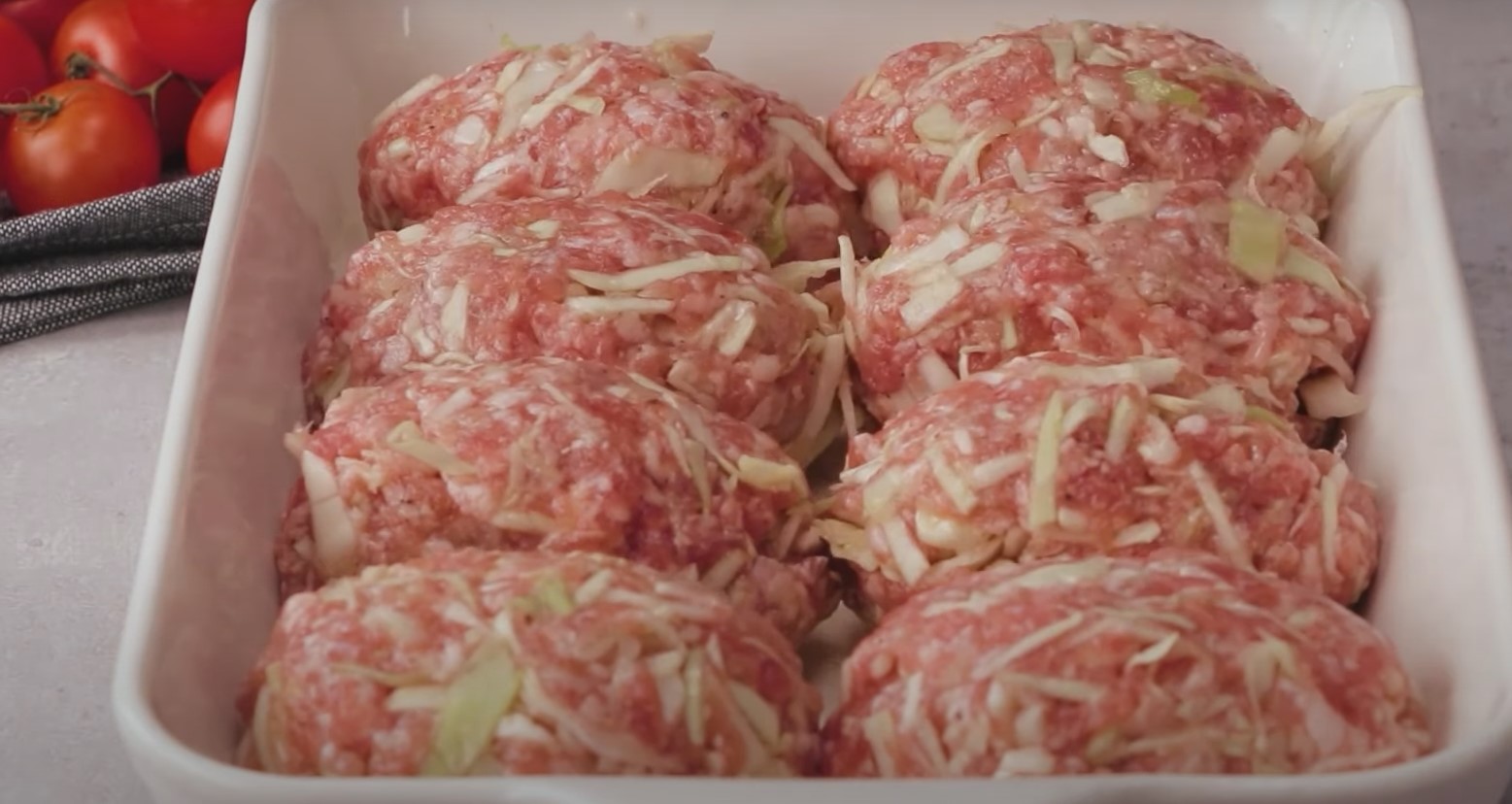 Z powstałej jednolitej masy uformuj pulpety i połóż je obok siebie w foremce do pieczenia. Weź drugą miskę i przełóż do niej wszystkie potrzebne składniki na sos do klopsików oprócz wody.