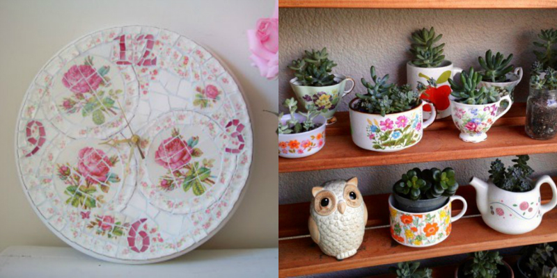 Stary, zakurzony serwis lub pamiątkowa zastawa nie musi stać bezużytecznie na kuchennych półkach. Można je wykorzystać jako podstawki lub doniczki do kwiatów. Nada się im w ten sposób oprócz wartości sentymentalnych, również funkcje praktyczne.