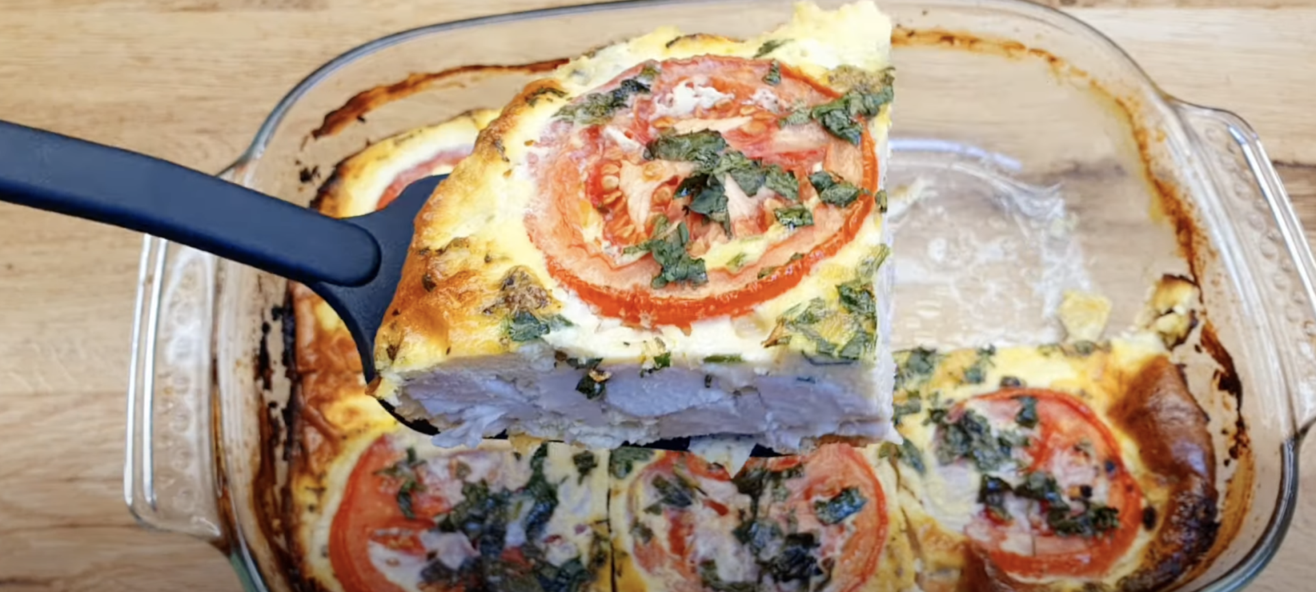 Na koniec umyj, osusz i pokrój pomidory w plastry. Poukładaj kawałki pomidora na potrawie następnie całość posyp natką pietruszki lub bazylią.
