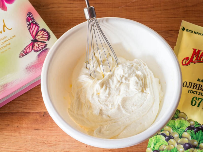 Pozostaw masło w temperaturze pokojowej na kilka godzin przed gotowaniem. Kiedy zmięknie, wymieszaj je z majonezem. Dodaj cukier, sól, jajko, wanilinę (lub 2 łyżeczki cukru waniliowego) i ubijaj do uzyskania gładkości.