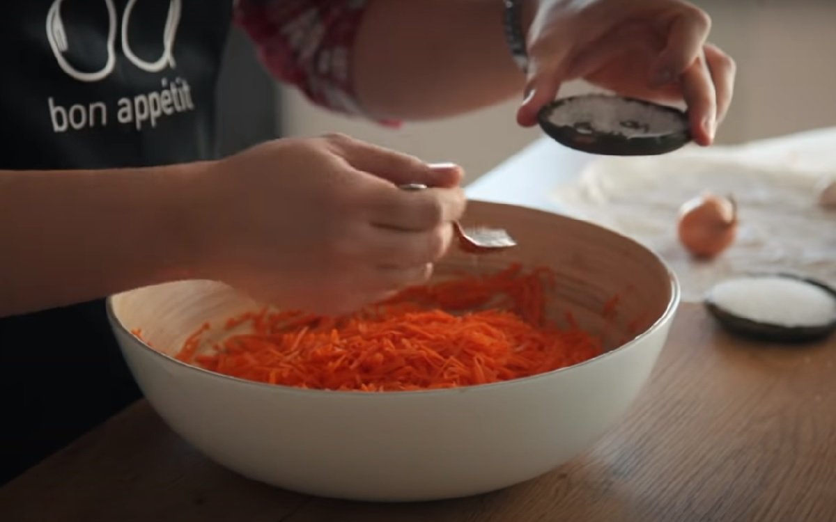 Co do przypraw zależy to od indywidualnych preferencji smakowych. Po starciu marchewki przełóż ją do przygotowanego wcześniej głębokiego naczynia i dopraw solą i cukrem. Następnie całość skrop 2- 3 kroplami octu.