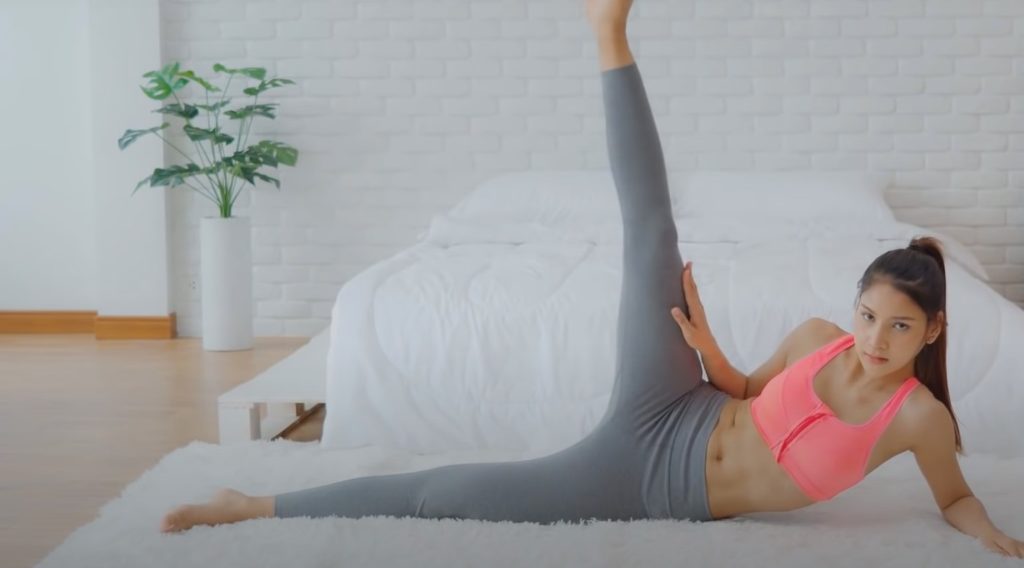 Ćwiczenie polegające na położeniu się na boku i oparciu się na łokciu. Nogi muszą być wyprostowane i następnie jedną nogę podnieść najwyżej na tyle ile da się radę. 30 sekund na obie strony.