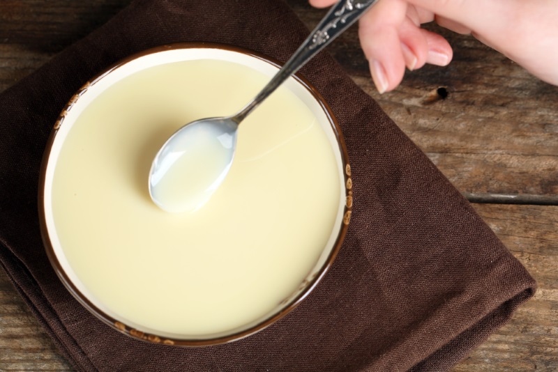 Kolejnym etapem jest stworzenie wypełnienia. Do tego potrzebujemy 20 g żelatyny, którą rozpuszczamy w 50 ml wody. Należy odstawić żelatynę z wodą na ok. 10 min, a później rozpuścić ją w goręcej kąpieli. Można to również zrobić w mikrofalówce.