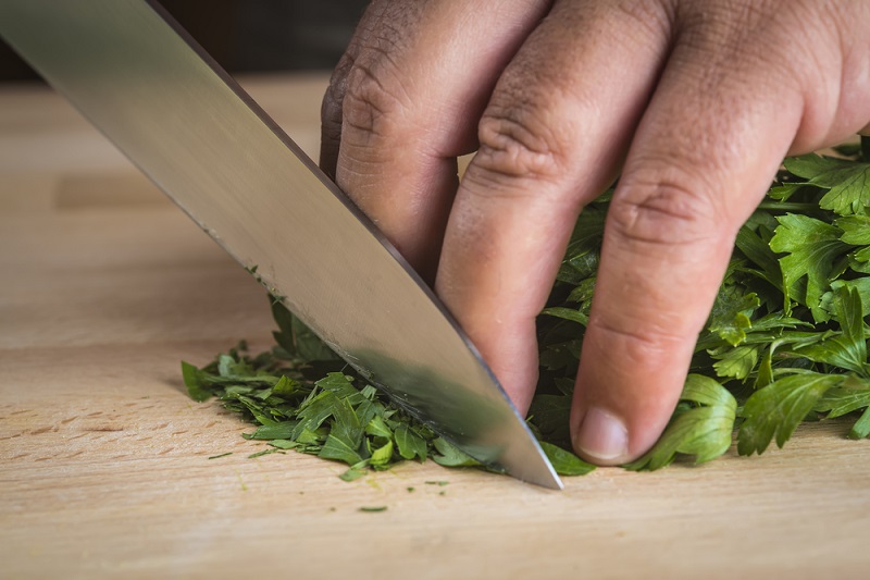 W następnej kolejności siekamy drobno zioła. Może to być, np. koperek albo pietruszka (wedle uznania).
