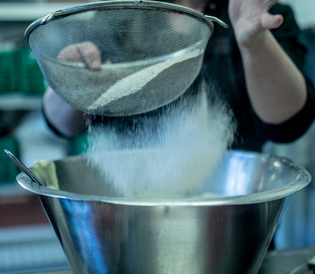 Mąka? Przesiewana! Dodaj sól, cukry i zaczaruj mieszankę. A potem… jogurt, masło i nasze drożdże.
