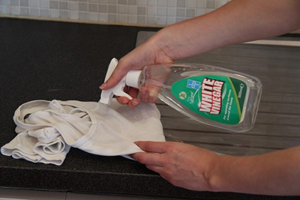Biały ocet doskonale sobie radzi z usuwaniem najbardziej problematycznych zabrudzeń. Spryskaj octem daną plamę i pozostaw na około 10-15 minut. Gdy mamy łagodne plamy, możemy wymoczyć tkaninę w mieszance octu z ciepłą wodą w stosunku 1:2. Po praniu plama powinna zniknąć.