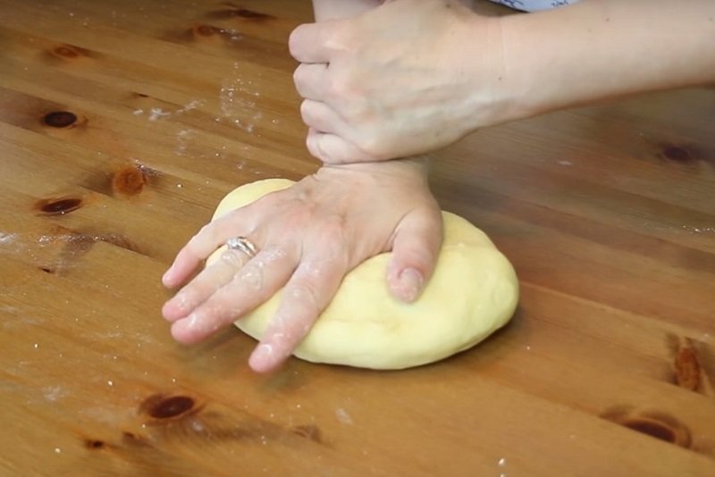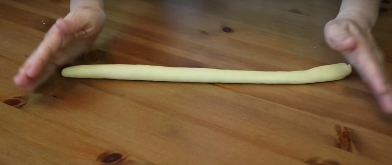 Rozwałkuj przygotowane ciasto na gruby walec. Do wałkowania nie używamy już mąki.