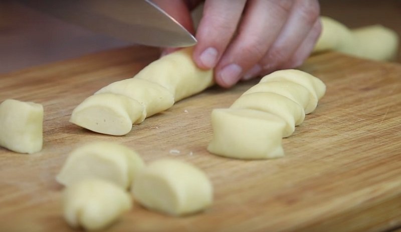 Walec pokrój na małe kawałki, z których uformuj małe kuleczki.