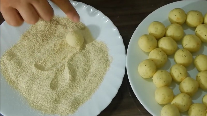 Z otrzymanej masy uformuj, małe, krągłe pączki, a następnie obtocz dokładnie w bułce tartej.
