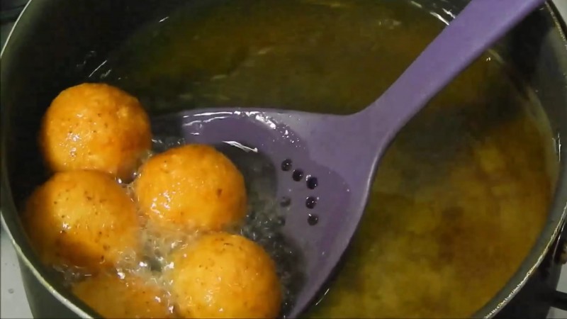 Przekąskę wrzucaj na gorący olej do zarumienienia. Pilnuj, by ser nie wylatywał. Gotowe!