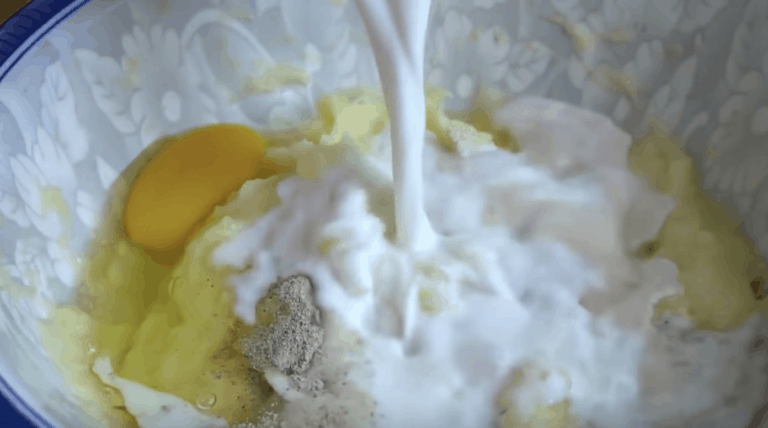 Z ziemniaków robimy puree, dodajemy sól, pieprz oraz drożdże, mleko i jajko.