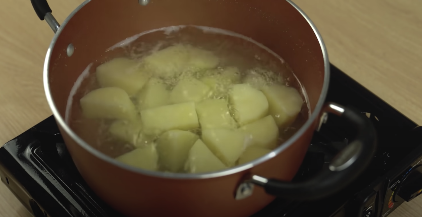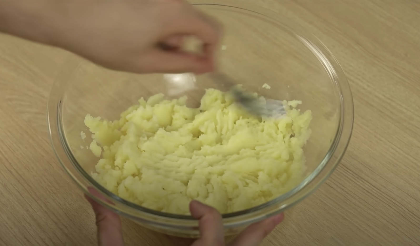 Gotuj do miękkości i ugnieć na puree. Dodaj posiekaną natkę pietruszki, starty ser, skrobię kukurydzianą i sól.