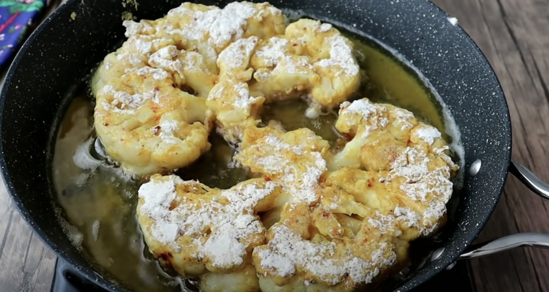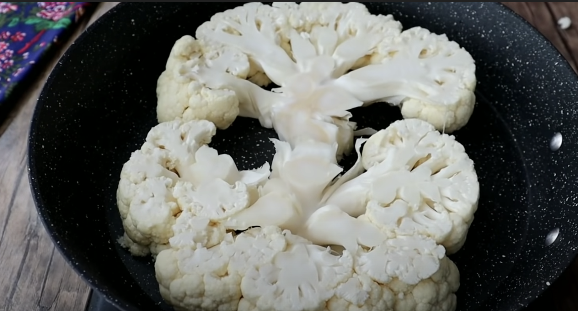 Gotuj plastry kalafiora w garnku lub na patelni przez około 7-8 minut.