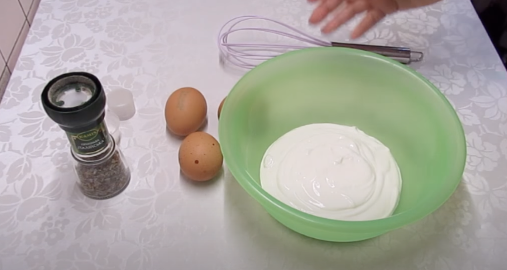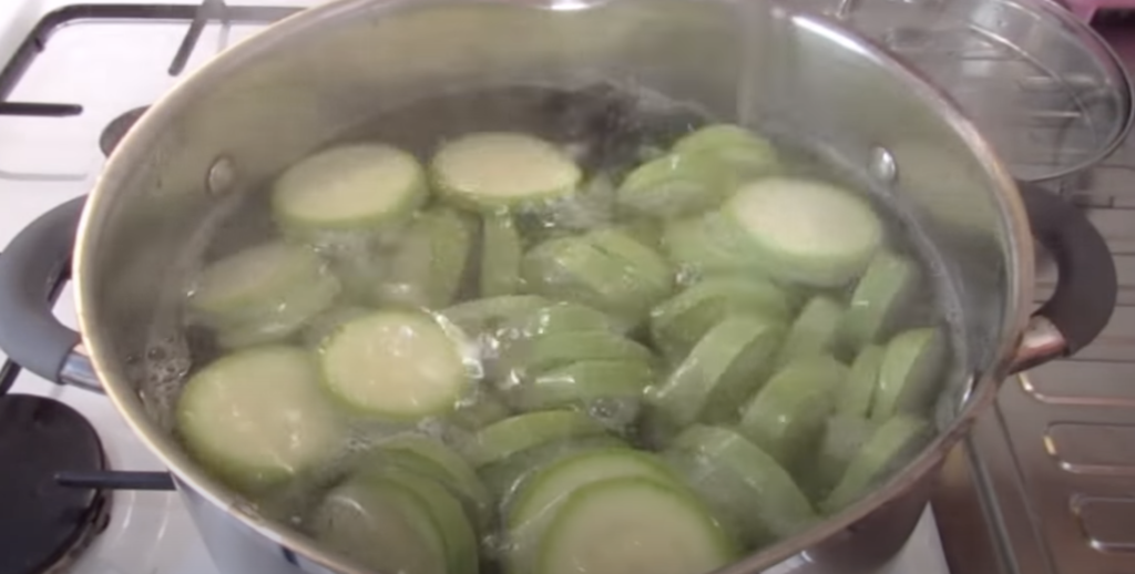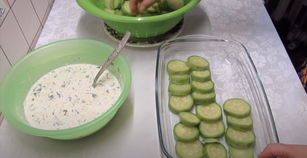 Gdy zacznie się gotować, dodaj do niej cukinię i gotuj tylko przez 30-40 sekund. Odcedź cukinię i ostudź. W osobnej misce wymieszaj jajka ze śmietaną.