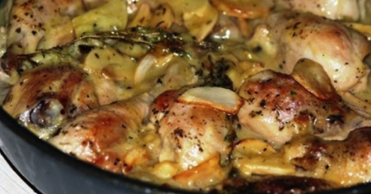 Ten zapiekany kurczak będzie idealnym rozwiązaniem, kiedy potrzebujemy szybkiej w przygotowaniu potrawy na niedzielny obiad, lub rodzinną uroczystość, a do umycia pozostanie po nim jedynie jedna miska i brytfanka.