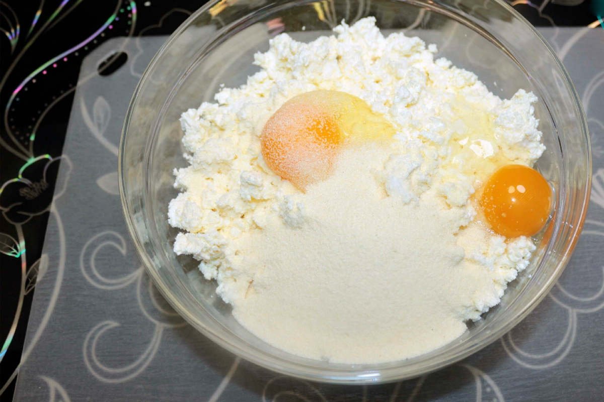 Ważne, żeby przed rozpoczęciem pamiętać o tym, by twaróg był suchy (w razie potrzeby można go odsączyć przez owiniętą gazę).