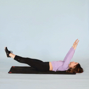Ćwiczenie unoszenia nóg i rąk w kształcie litery V (30 sekund): Połóż się na podłodze, ręce nad głową i nogi proste i złączone. Unieś je, próbując dotknąć nóg rękami, formując kształt litery V, a następnie wróć do pozycji wyjściowej bez dotykania ziemi, trzymając stopy proste.