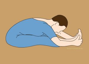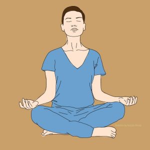 Zrelaksuj się, siadając po turecku. Kręgosłup podnieś delikatnie w górę, podobnie jak szyję. Opierając wierzchy dłoni na kolanach, pozostawaj tak przez chwilę, oddychając głęboko i spokojnie. Działa to kojąco na umysł i mięśnie.