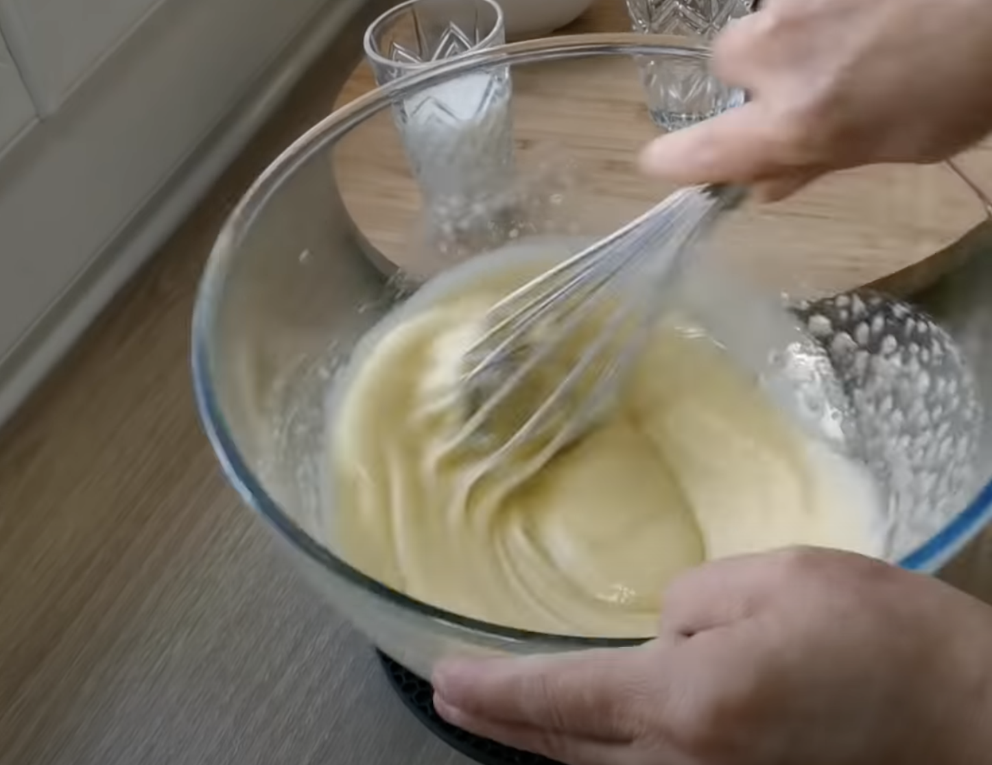 Ubij jajka. Dodaj mleko, olej i ponownie wymieszaj. Na koniec wymieszaj pozostałe składniki ciasta.