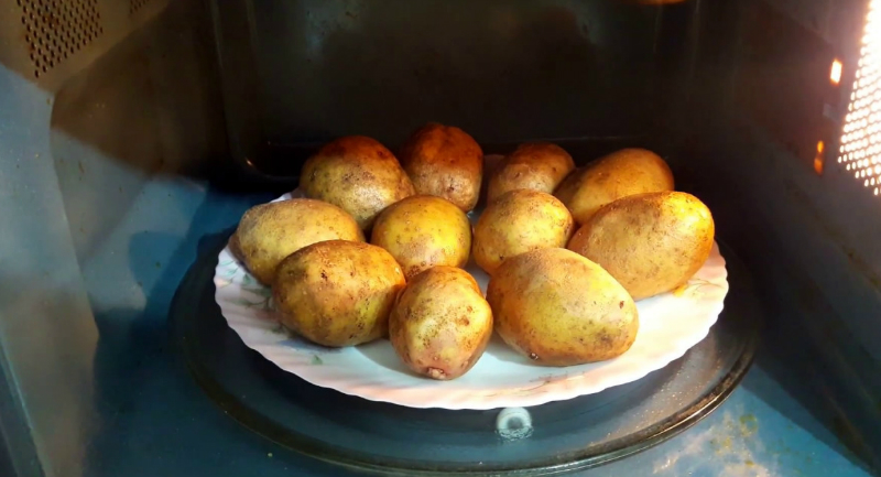 Aby szybko ugotować ziemniaki w całości, dokładnie umyj bulwy, nakłuj je widelcem, włóż do odpowiedniego pojemniku i do kuchence mikrofalowej. W przypadku 2 średnich bulw wystarcza 5-6 minut przy maksymalnej mocy kuchenki. Zwiększ czas, jeśli użyjesz większej ilości ziemniaków.