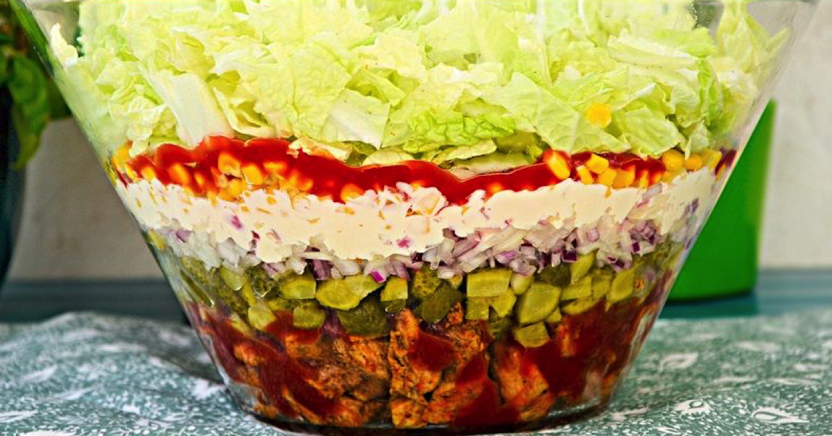 Sałatka gyros jakiej jeszcze nie jadłaś: Sałatka przekładaniec.